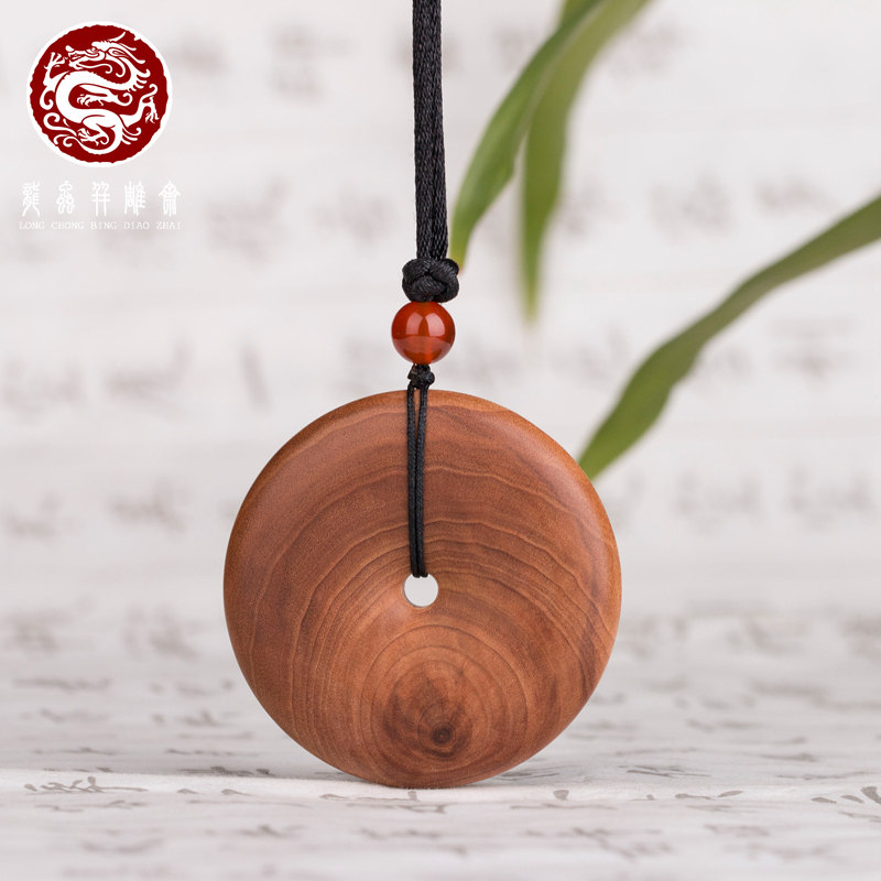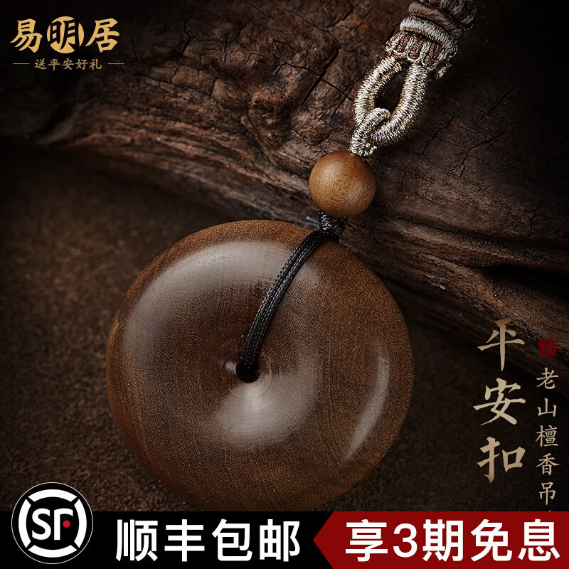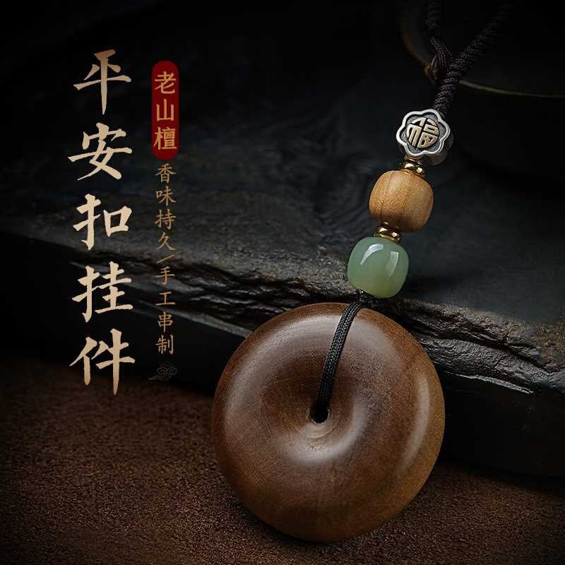 老山檀香平安扣吊坠男项链女檀香木高级感原木老料复古毛衣链挂饰