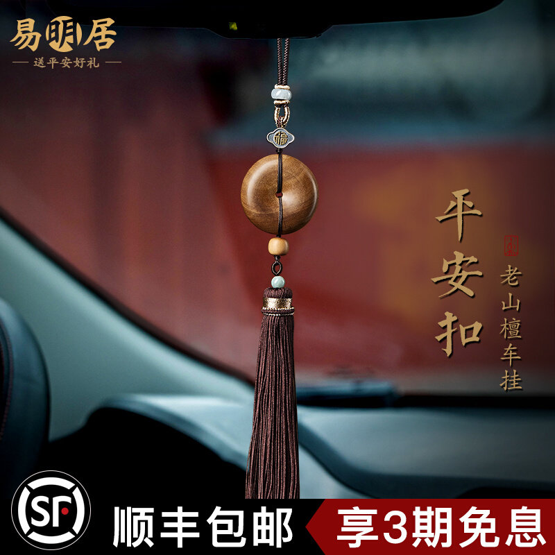 老山檀平安扣吊坠汽车钥匙扣精致男女士挂件福字牌和田玉挂坠挂饰