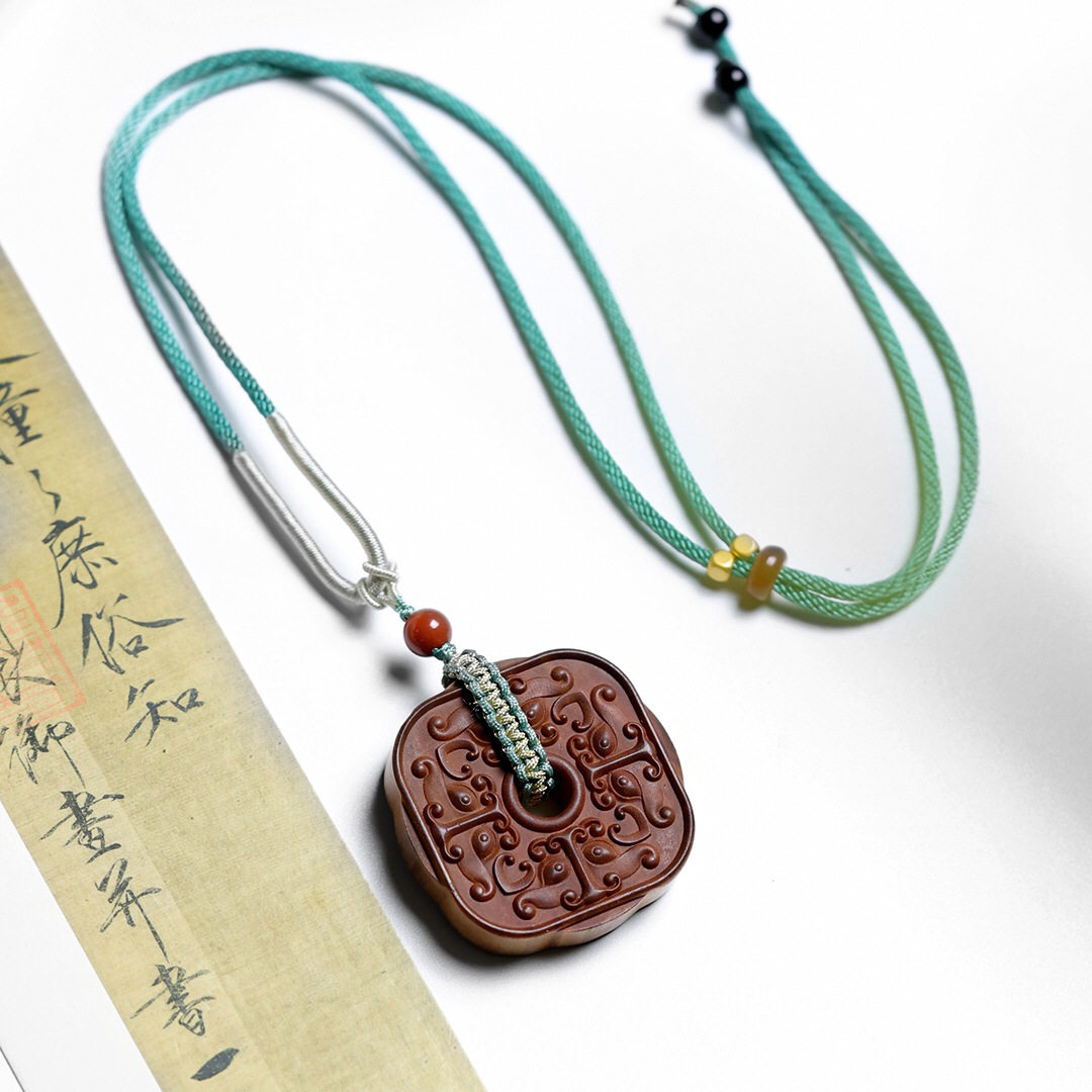 极速印度老山檀四方神兽平安扣吊坠檀香木手工雕刻国风民族风挂件