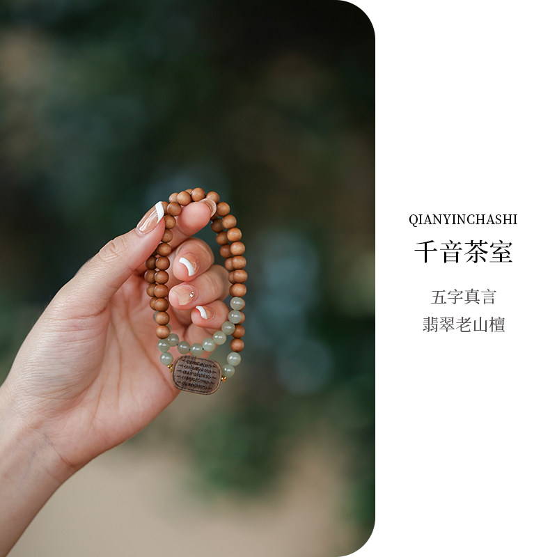 【五字真言翡翠手串】手作印度老山檀香手链文玩盘玩男女配饰首饰