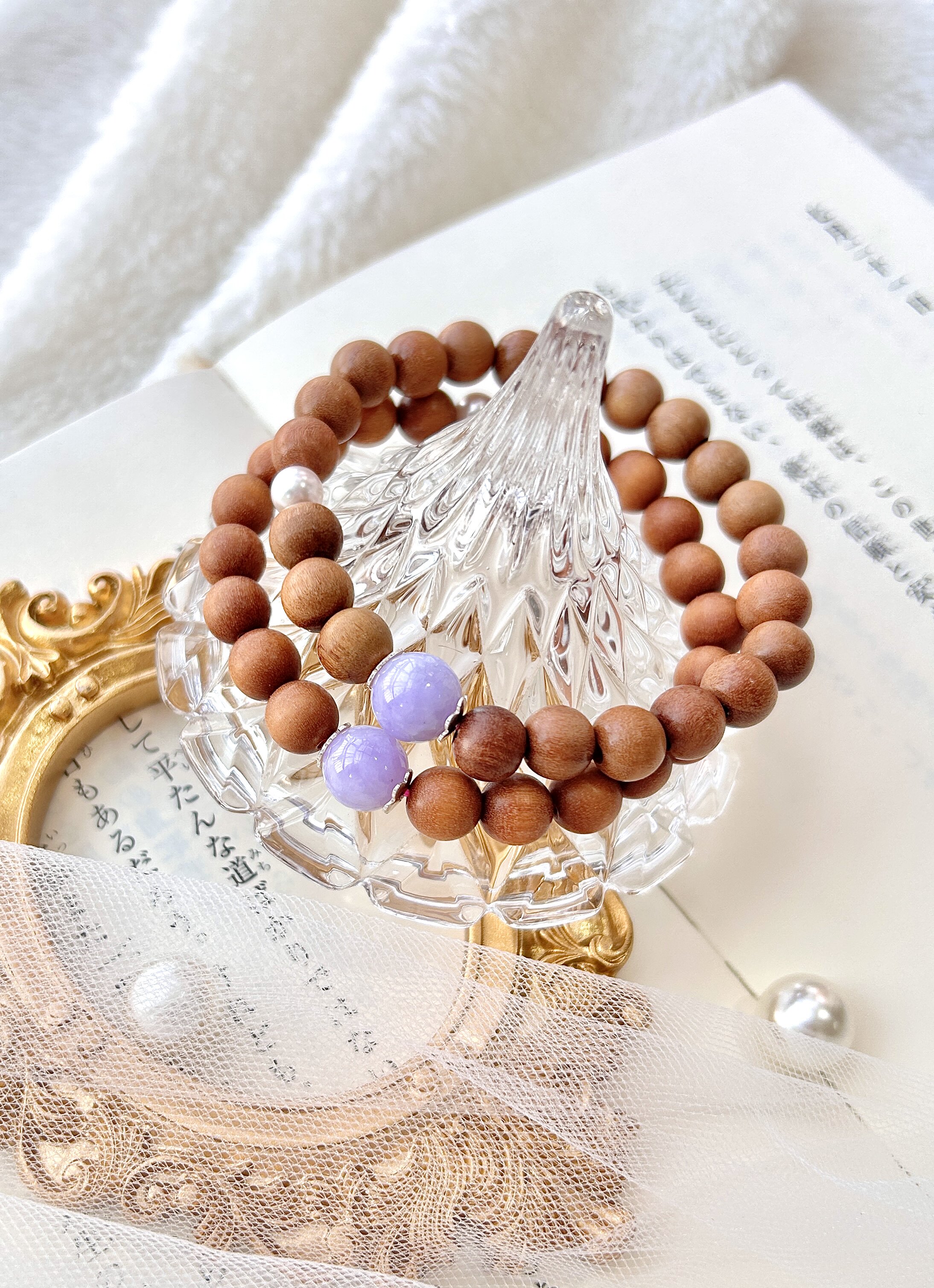 清冷感国风多宝翡翠木珠手串 老山檀搭配天然翡翠圆珠手链紫翡