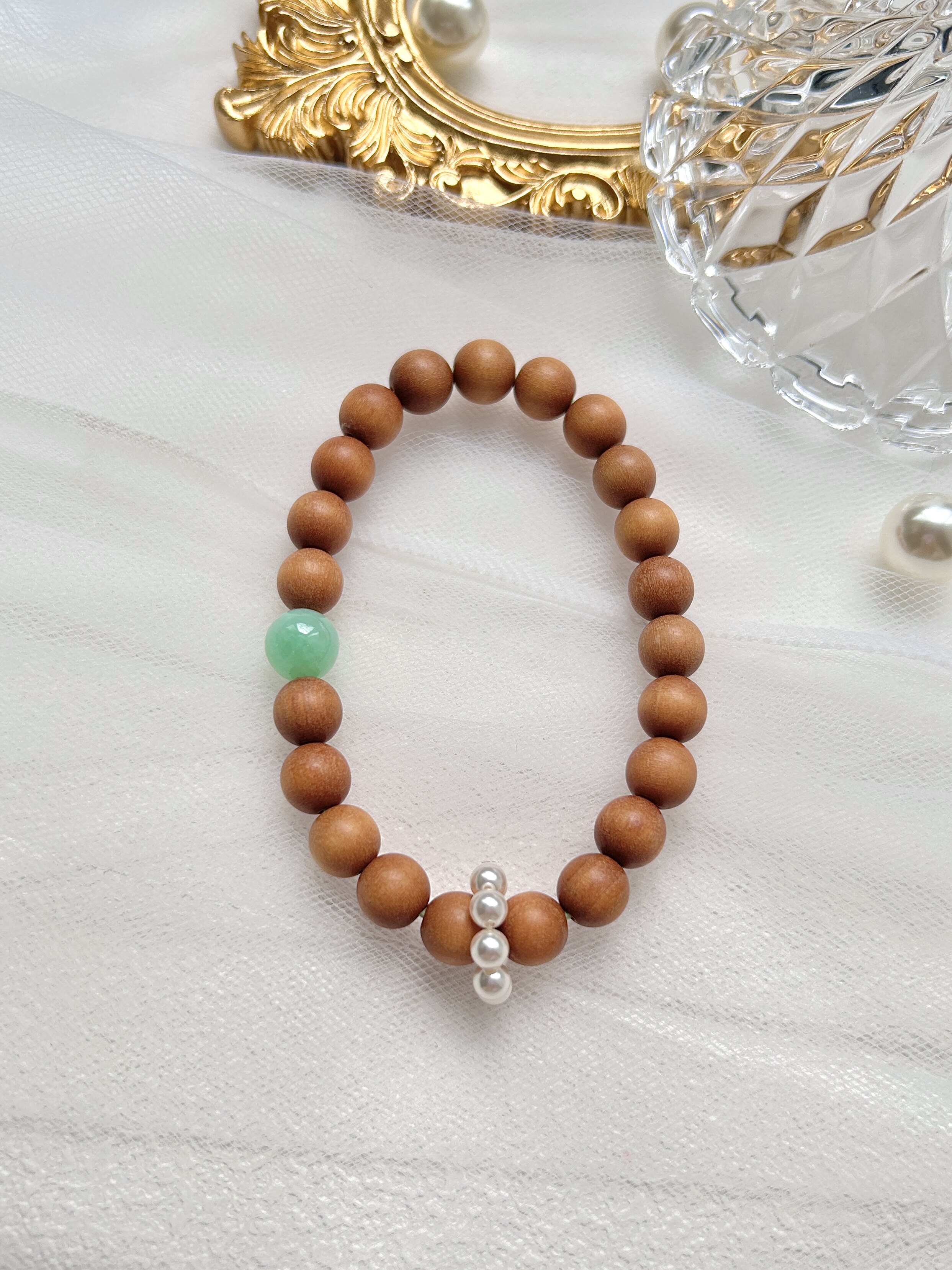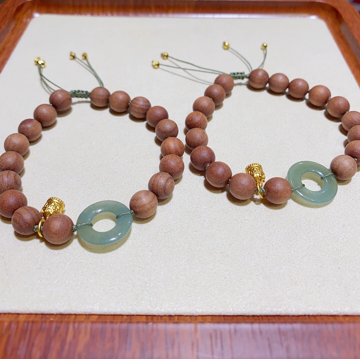 天然老山檀手编绳手链搭配天然翡翠环精美配饰