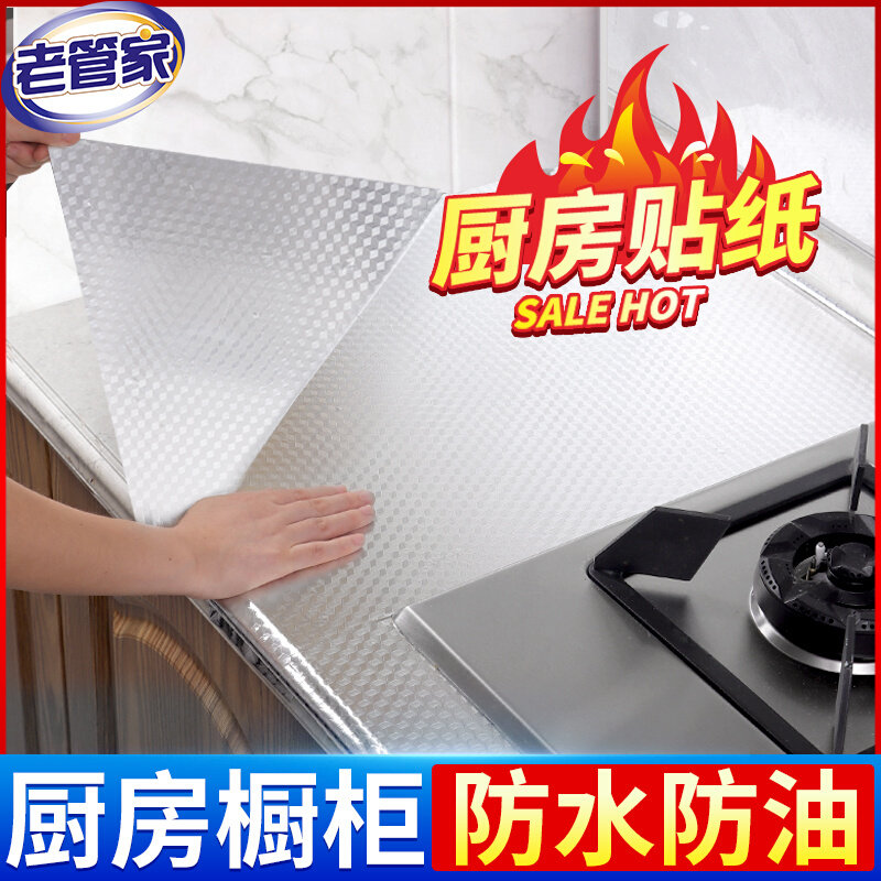 老管家厨房防油贴纸橱柜灶台防水防潮垫纸自粘耐高温加厚铝箔锡纸