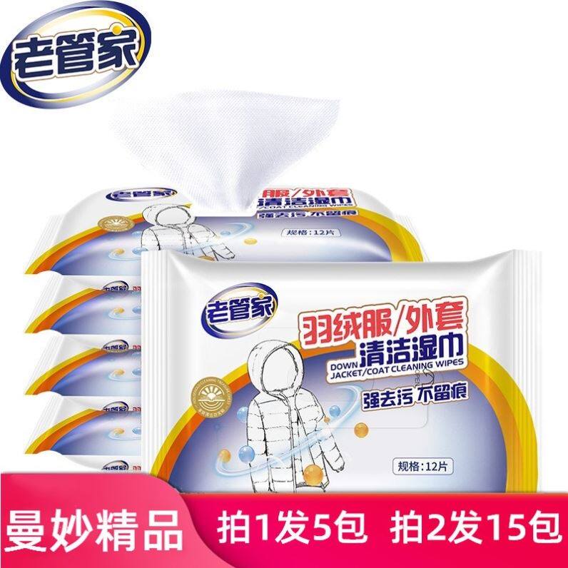 老管家羽绒服清洁湿巾免洗神器去污小包便携去油污干洗擦拭湿纸巾