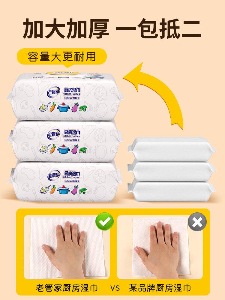 老管家厨房湿巾去油去污家用厨房清洁湿巾强力去油污纸巾加大加厚