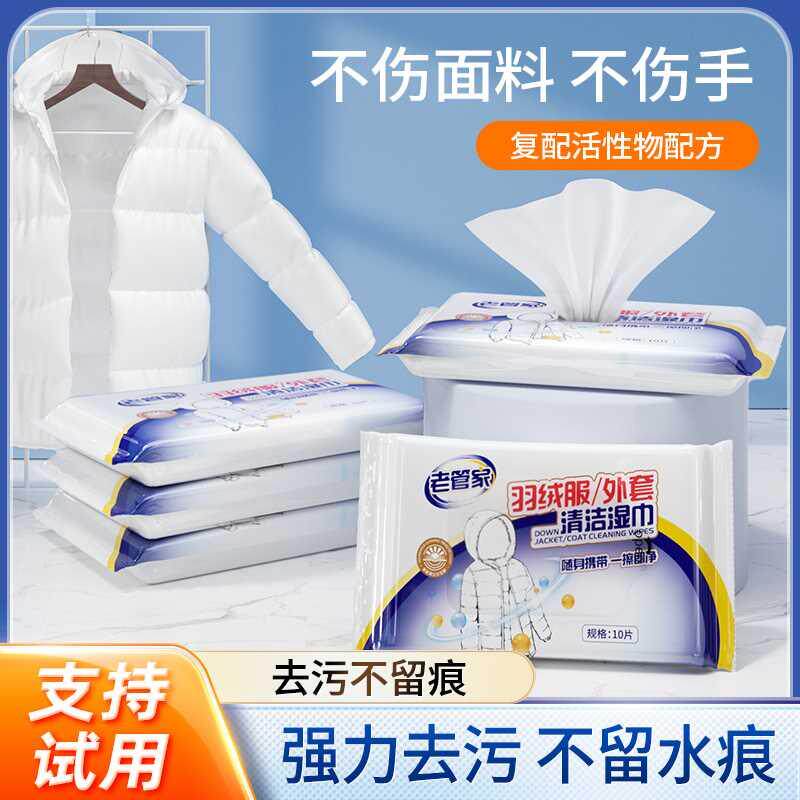 老管家羽绒服清洁湿巾免洗强力去污羽绒服清洁剂湿纸巾乾洗污渍用