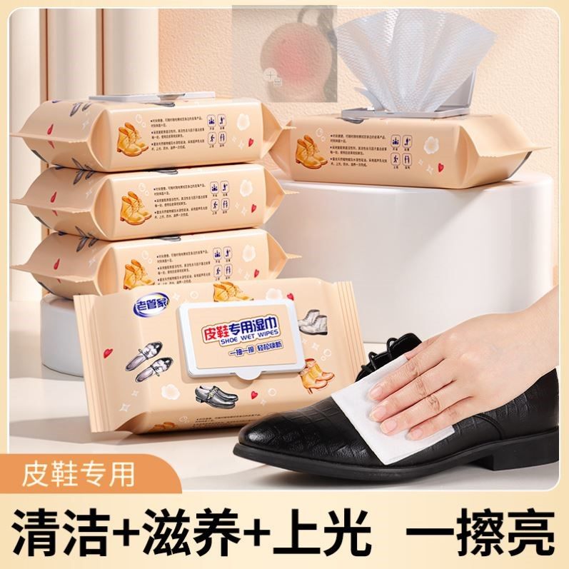 老管家擦鞋湿巾擦皮鞋专用湿巾鞋油一次性湿纸巾清洁护理保养神器
