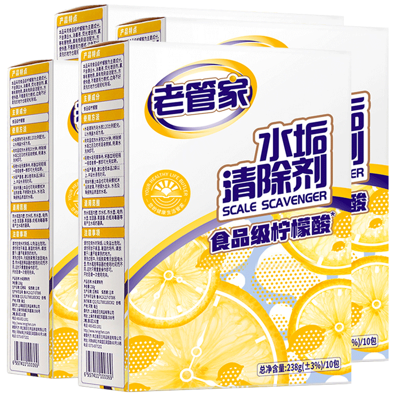 4盒老管家柠檬酸除垢剂家用电水壶热水器除水垢清除饮水机清洁剂