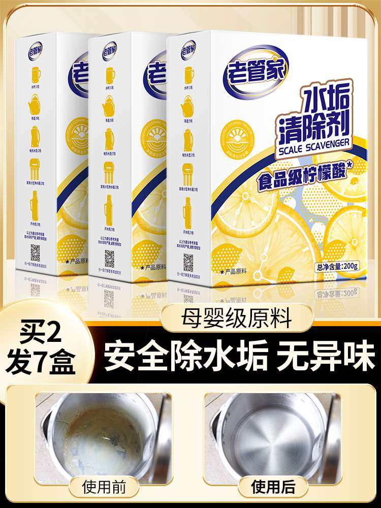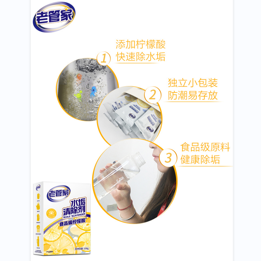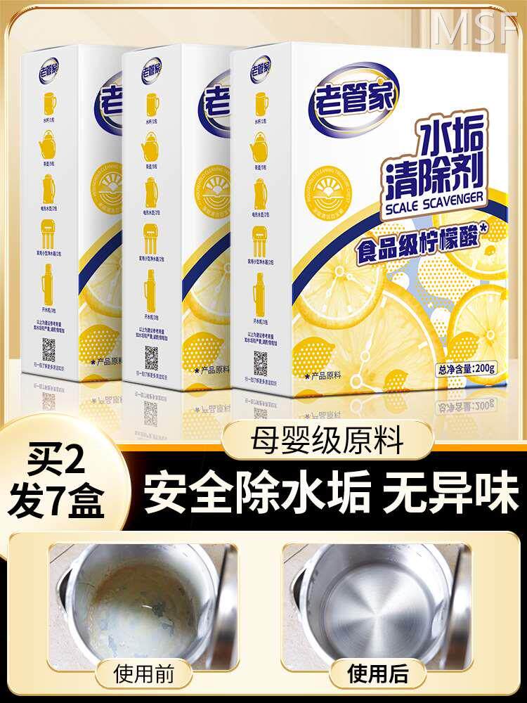 老管家水垢清洁剂去电热水壶烧水壶食品级柠檬酸除垢剂清除剂婴儿
