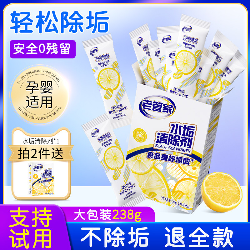 热销买2送1老管家柠檬酸除垢剂水垢清除剂电水壶饮水机锅炉茶垢去