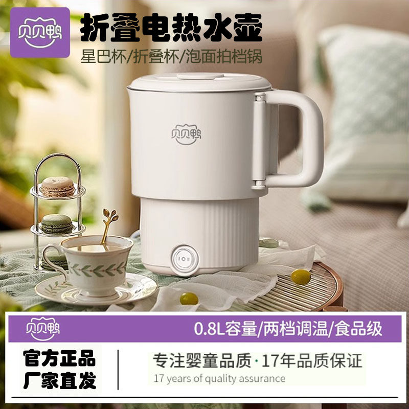 便携折叠电热水壶贝贝鸭旅行出差不锈钢水杯迷你恒保温宿舍烧水壶