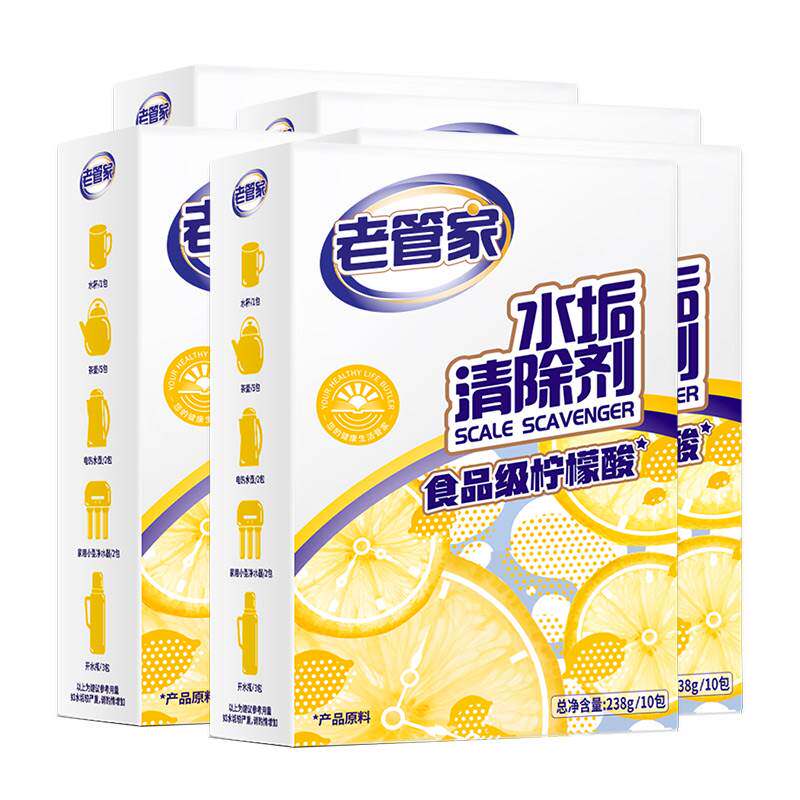 3盒老管家水垢清洁剂食品级柠檬酸除垢剂去除电热水壶烧水壶婴儿