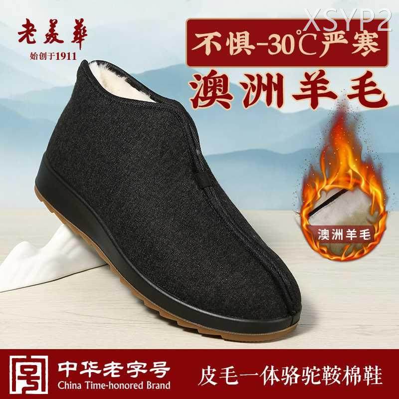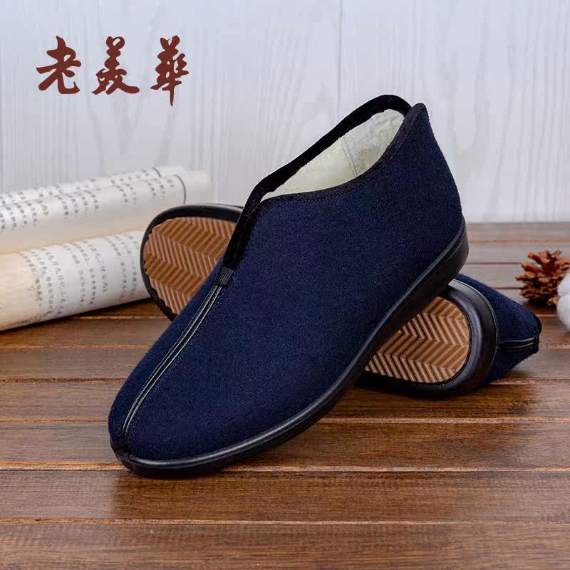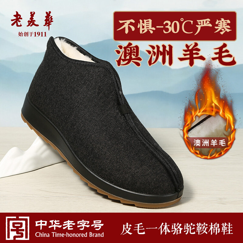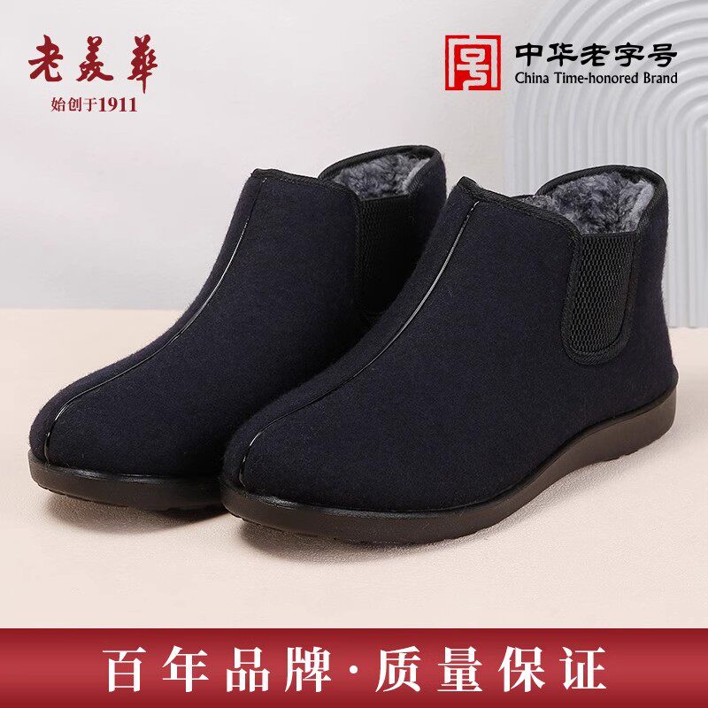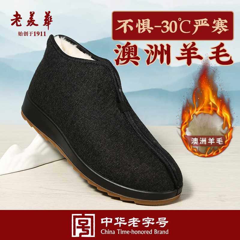 老美华冬季羊毛鞋老北京布鞋男棉鞋加绒保暖高帮男鞋爸爸鞋大码