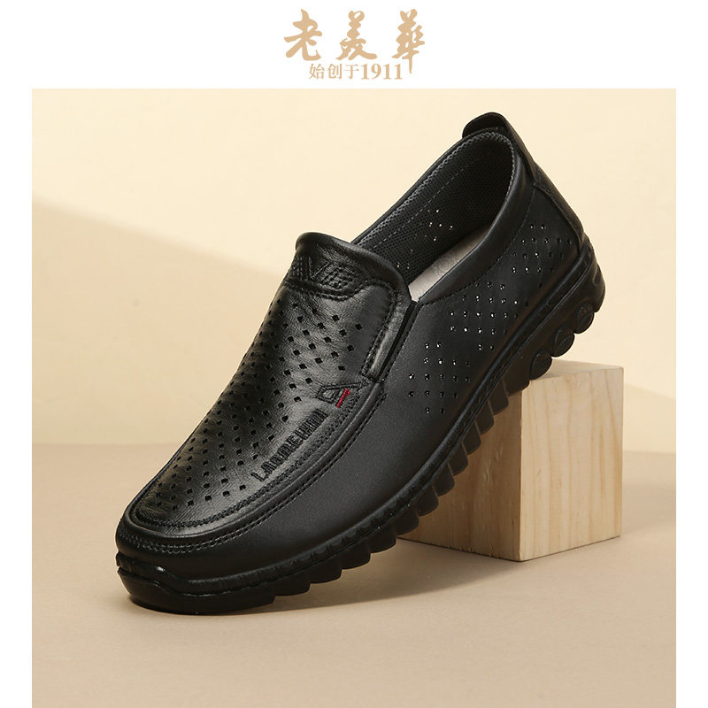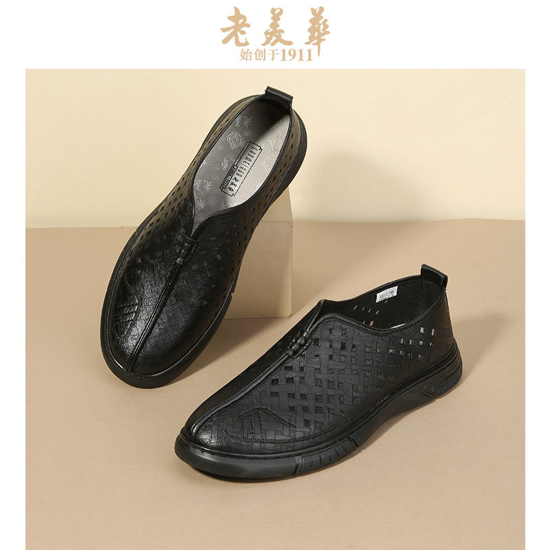 老美华2024夏季新款爸爸鞋中老年男士网眼透气休闲皮鞋舒适男鞋