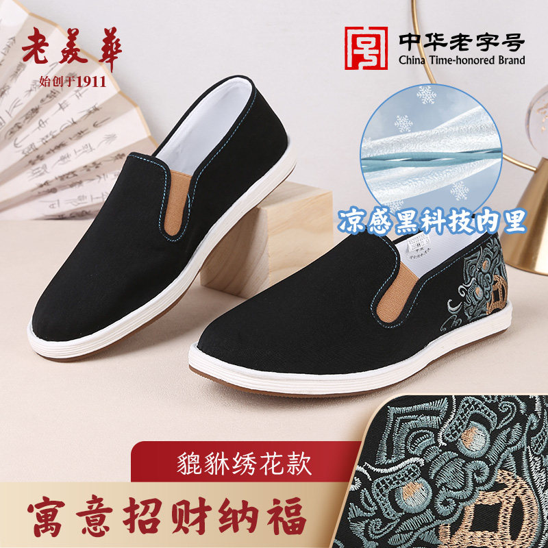 老美华春季新款老北京布鞋男款千层底一脚蹬男鞋子中国风国潮貔貅