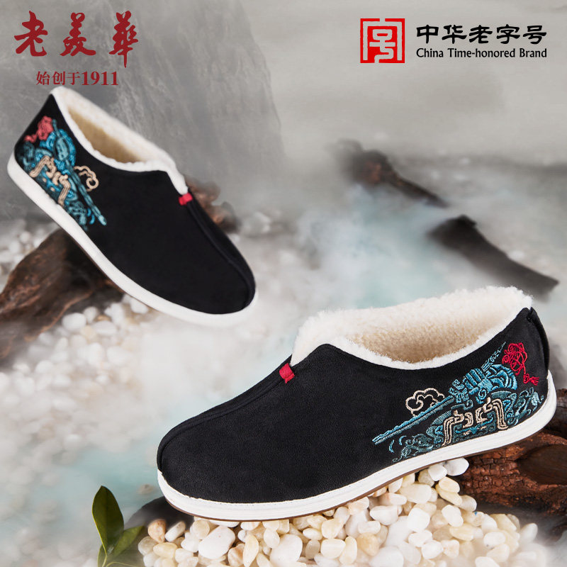 老美华【龙年限定款】门神刺绣冬季羊毛老北京布鞋一脚蹬保暖男鞋