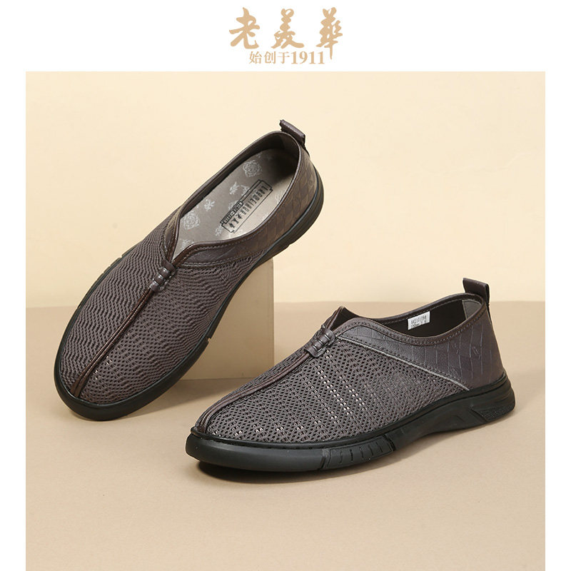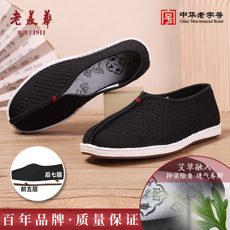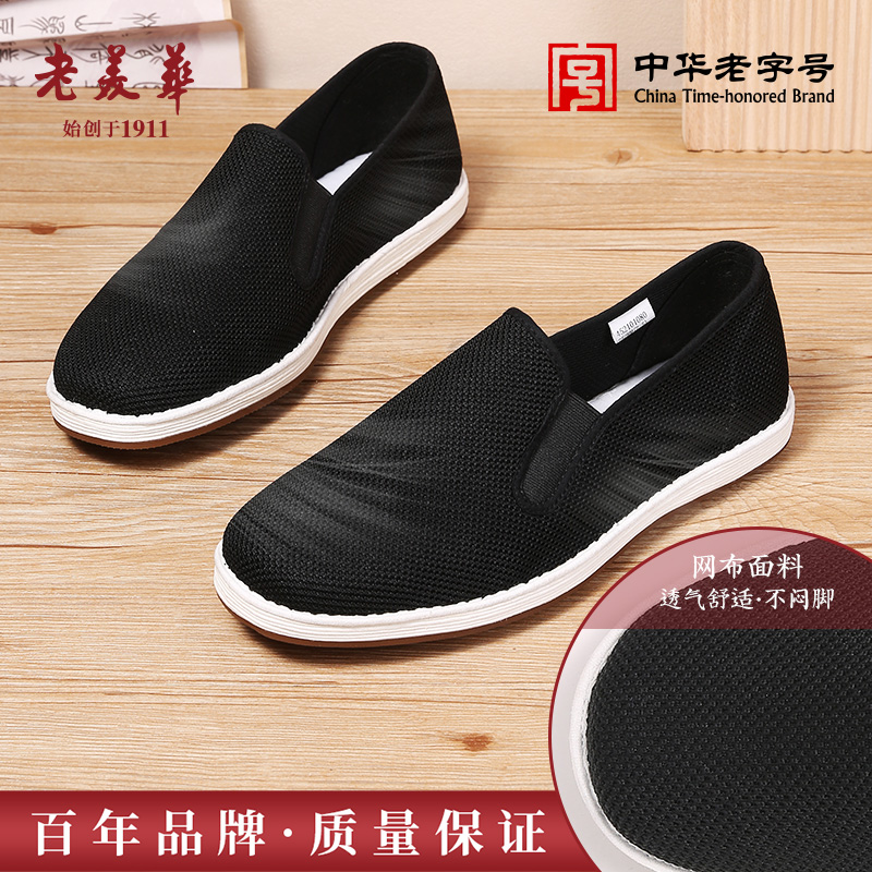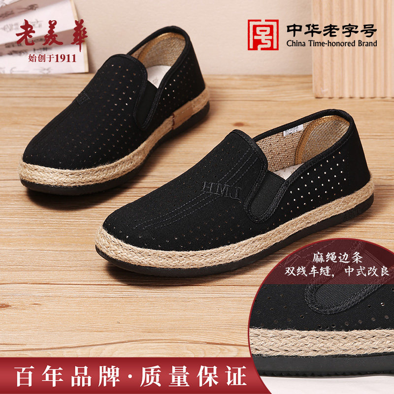 老美华2023夏季新款老北京布鞋男千层底老人鞋男鞋网眼网面鞋大码