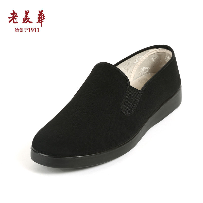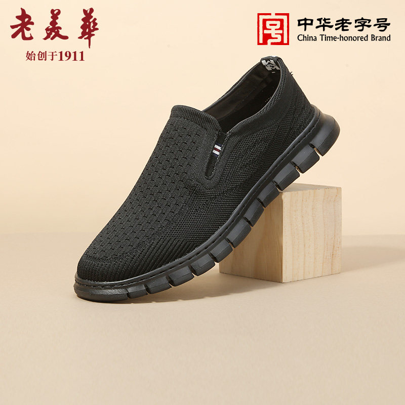 老美华春夏季老北京布鞋男老人鞋爸爸工作鞋一脚蹬男鞋软底黑布鞋