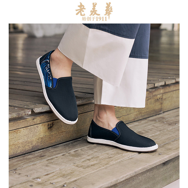 老美华春季老北京布鞋男款千层底一脚蹬男鞋子中国风国潮海水江崖