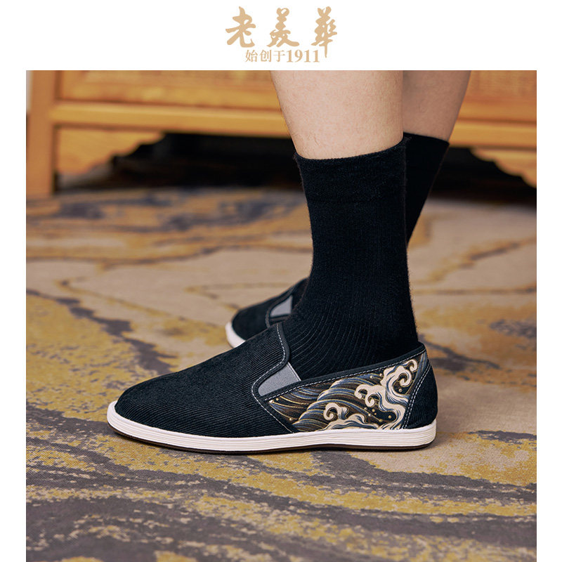 条绒缓震海水江崖老美华春季老北京布鞋男款千层底男鞋中国布鞋