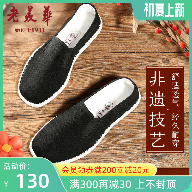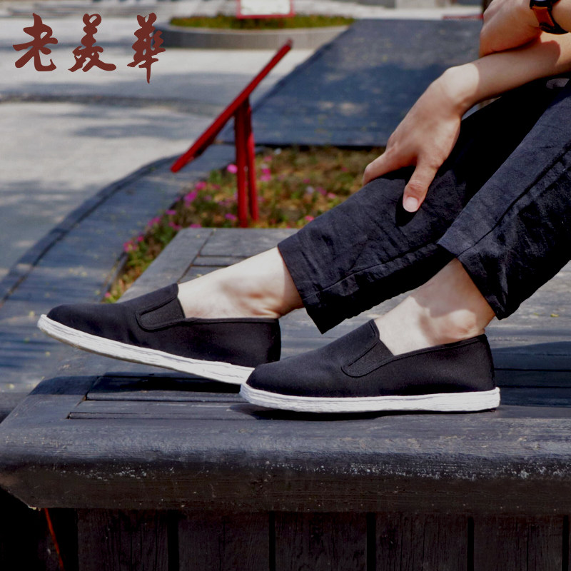 老美华春夏季老北京布鞋男休闲鞋纯手工千层底一脚蹬男鞋中国布鞋