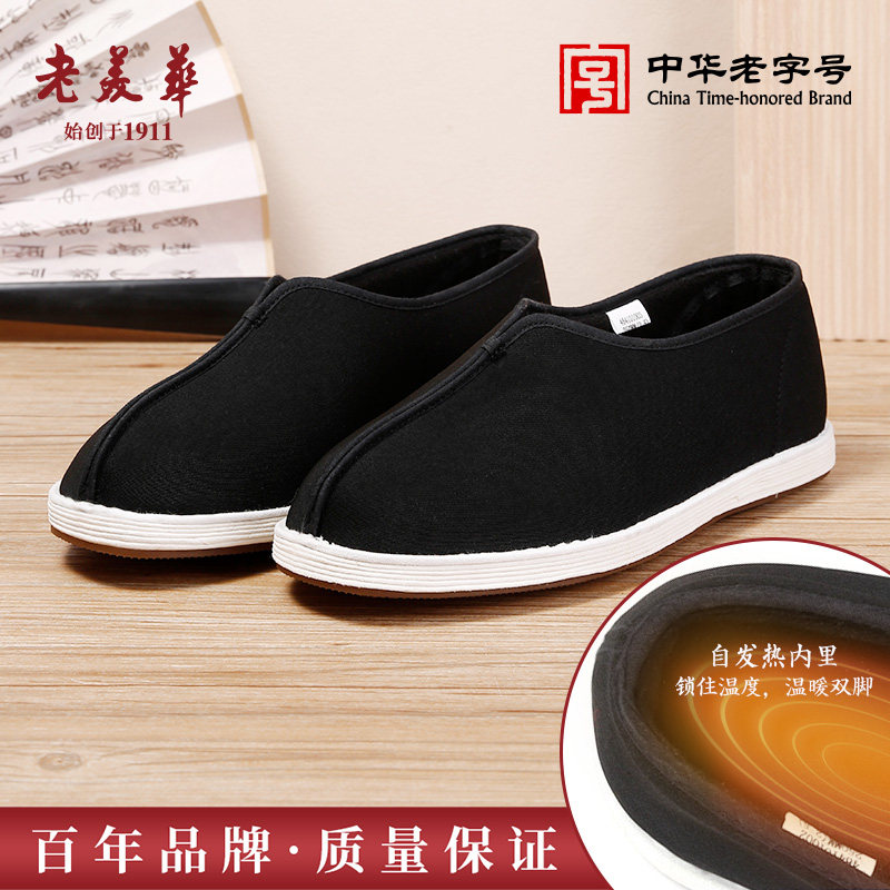 【饕餮热反射】老美华冬季加绒保暖老北京布鞋男棉鞋千层底男鞋