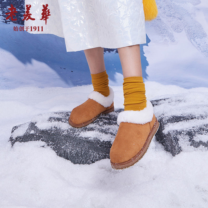 【绵羊毛保暖】老美华冬季加厚加绒保暖千层底鞋子布鞋时尚雪地靴