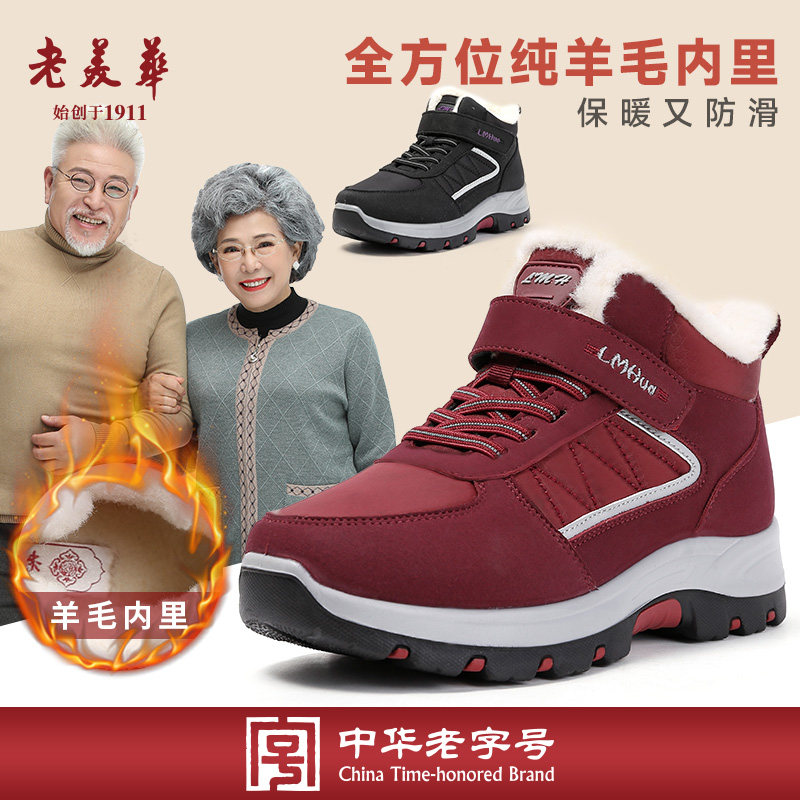 老美华冬季老人鞋老北京大棉鞋女羊毛鞋保暖加绒太太妈妈鞋雪地靴