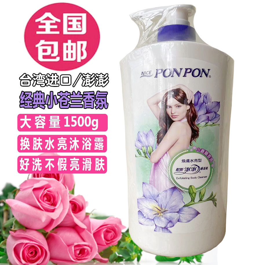 台湾原装耐斯彭彭澎澎PONPON女士香浴乳沐浴露液小苍兰滋润1500ML