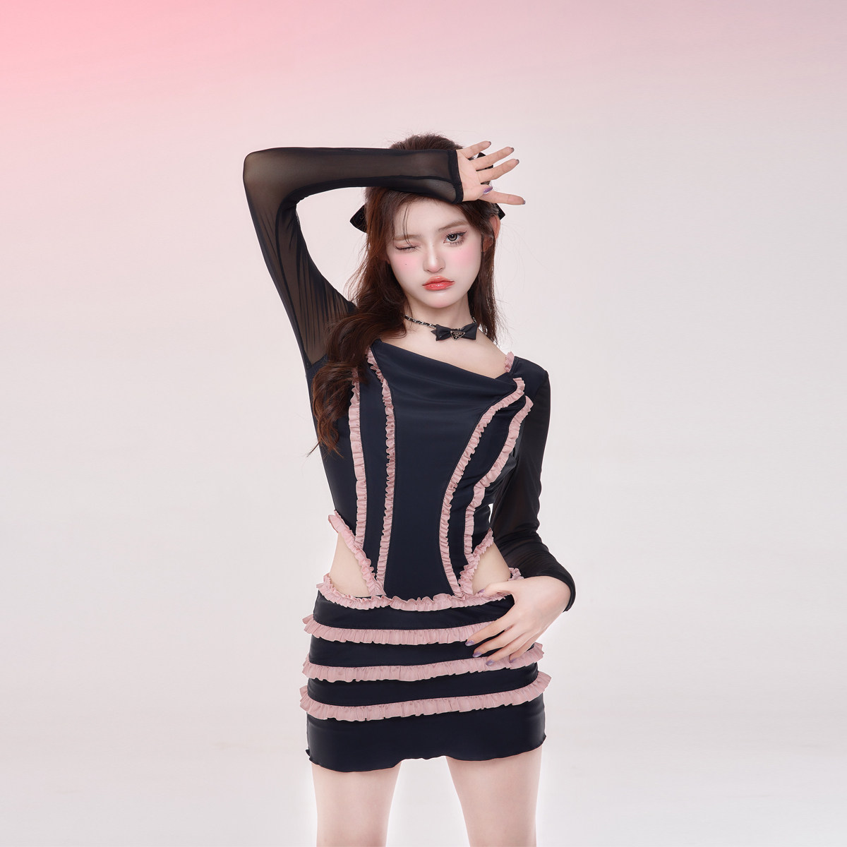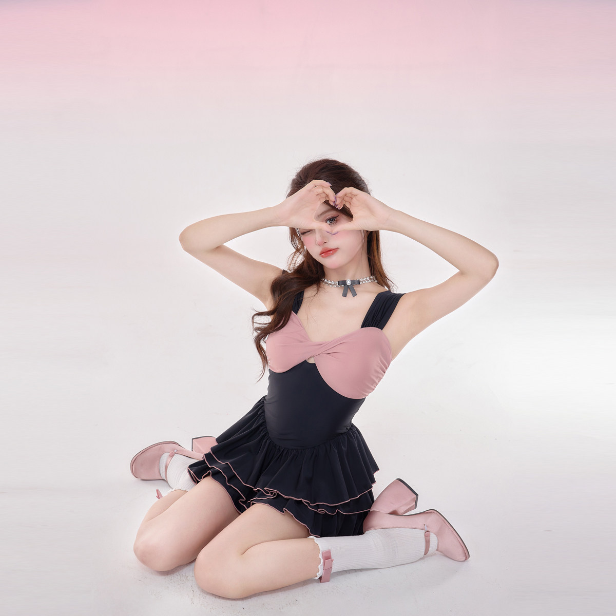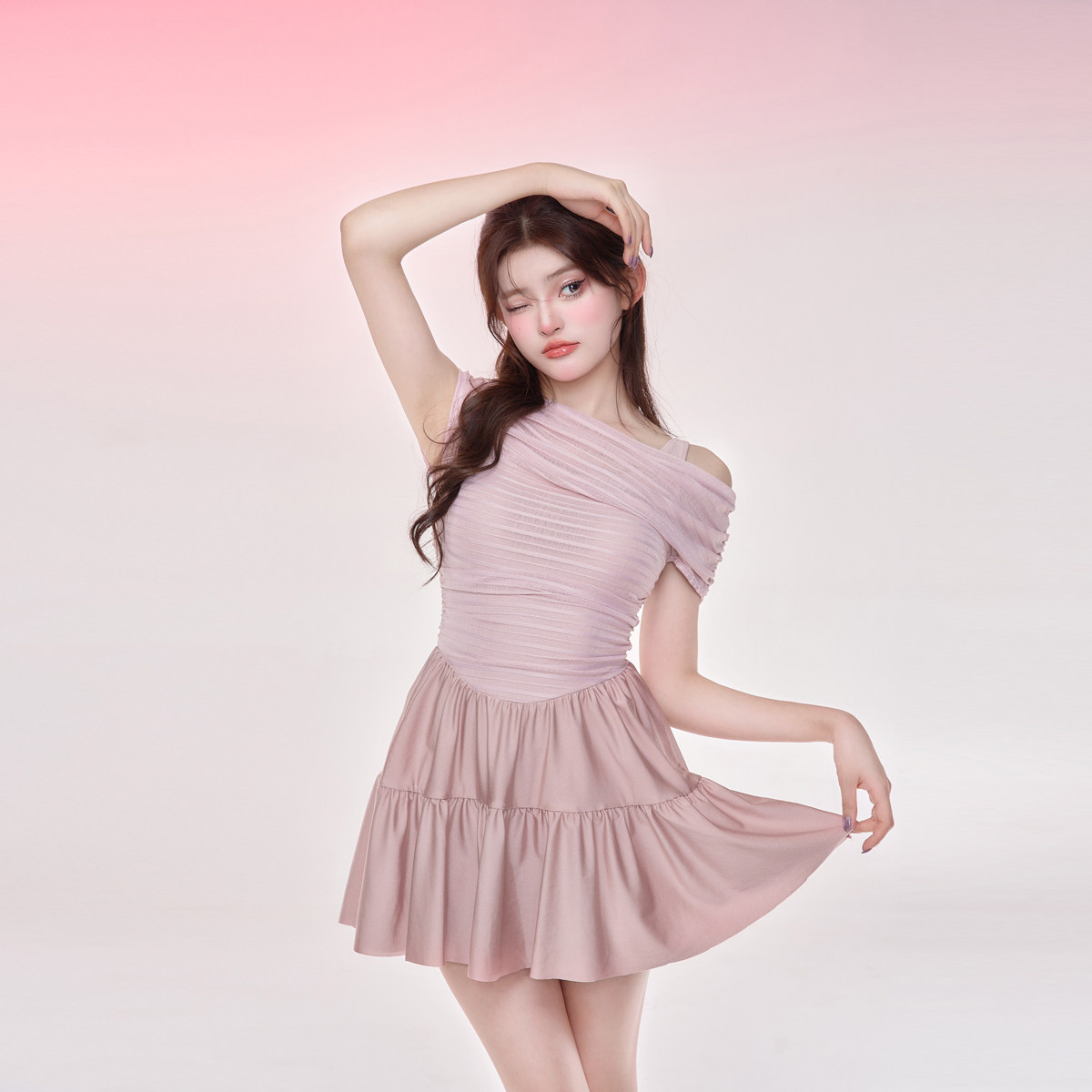 NAILANG泳衣女连体温泉2024新款纯欲小胸露背遮肚可爱蛋糕裙海边