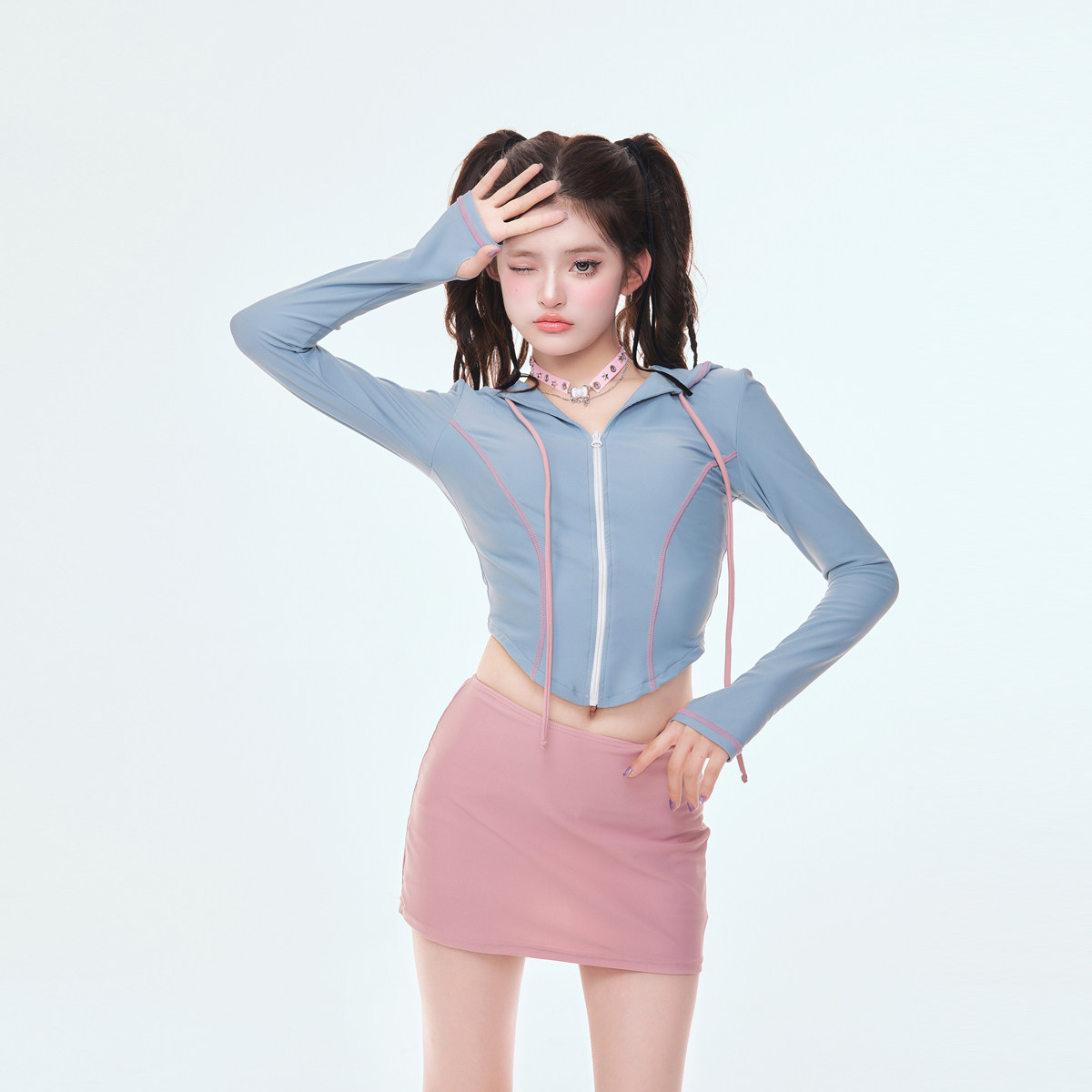 NAILANG泳衣女分体长袖保守遮肉纯欲泡温泉服帽衫裙式海边防晒冬