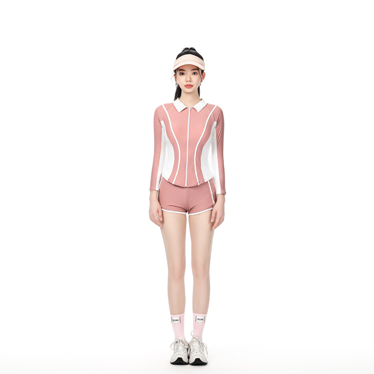 泳衣女款分体保守温泉泡澡高级感游泳长袖防晒海边品牌新款粉色裙