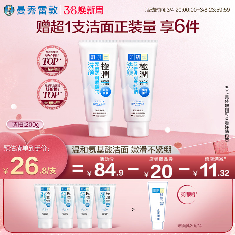 肌研极润氨基酸洁面乳滋润保湿洗面奶学生女双倍透明质酸官方正品