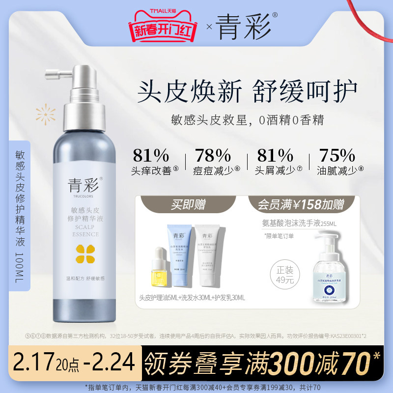 青彩头皮精华液温和舒缓止痒去屑保湿改善痘痘修护敏感头皮100ml