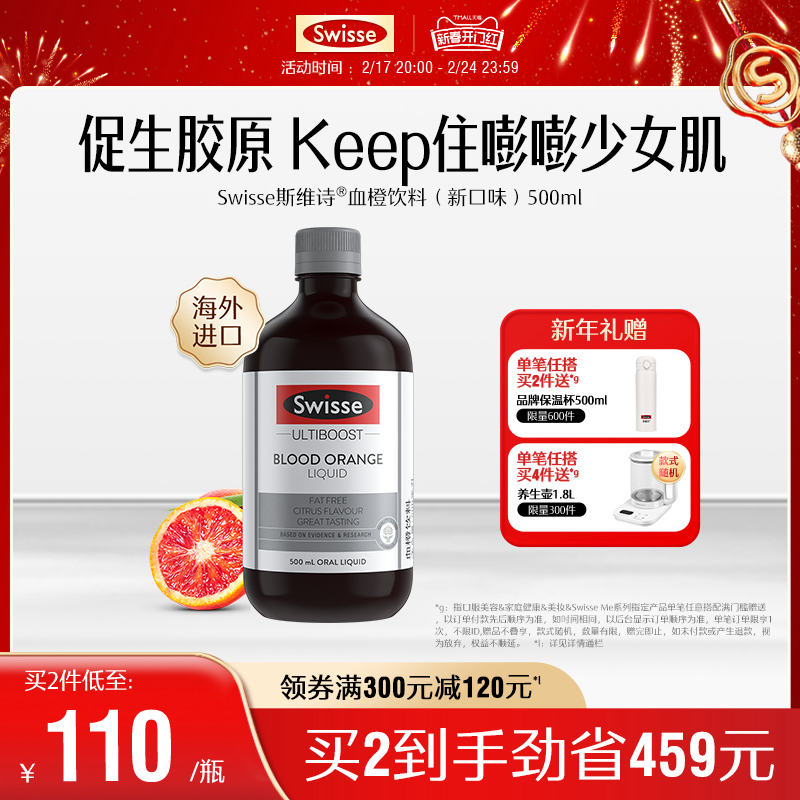 热巴同款Swisse斯维诗血橙精华液胶原蛋白液态饮口服液维生素C