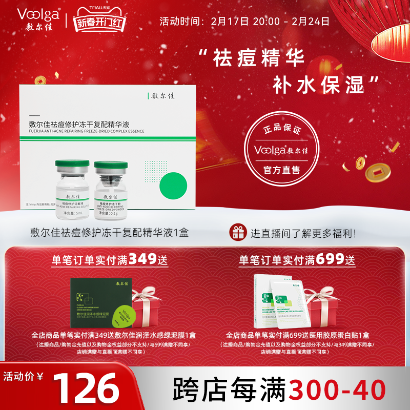 敷尔佳小绿瓶冻干粉 精华液祛痘修护肌肤色泽 养护痘肌女减轻泛红