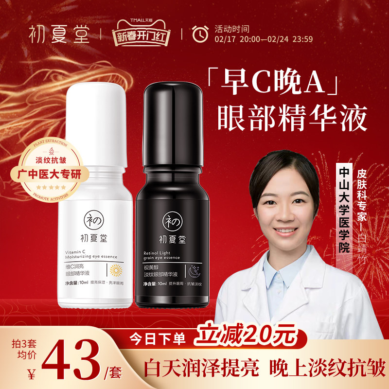 初夏堂早C晚A眼部精华液提亮紧致抗皱氧老淡化细纹黑眼圈视黄醇霜
