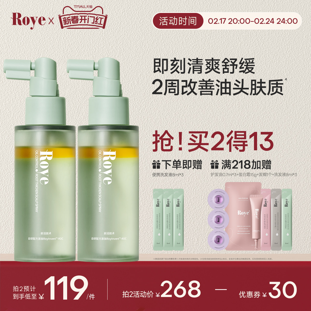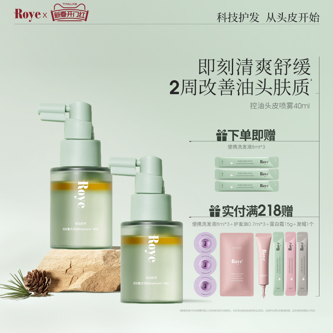 【百亿补贴】Roye若也头皮控油喷雾护理精华液舒缓发根蓬松精华