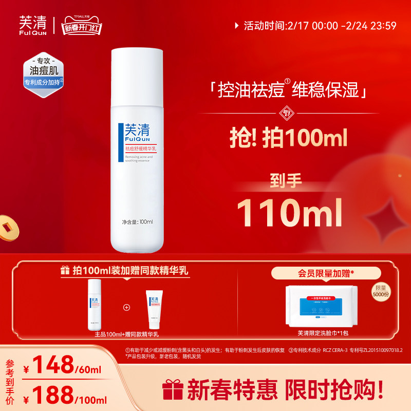 芙清酵母祛痘舒缓精华乳液控油清爽补水保湿维稳修护护肤品敏感肌