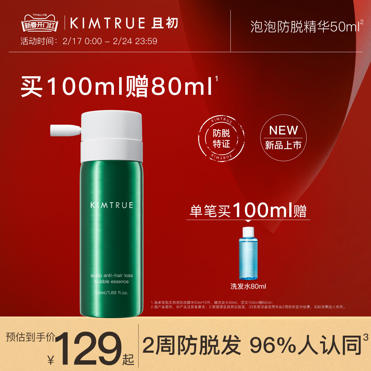 KIMTRUE且初防脱发精华液头皮固发护发清爽洗发水侧柏叶泡泡精华