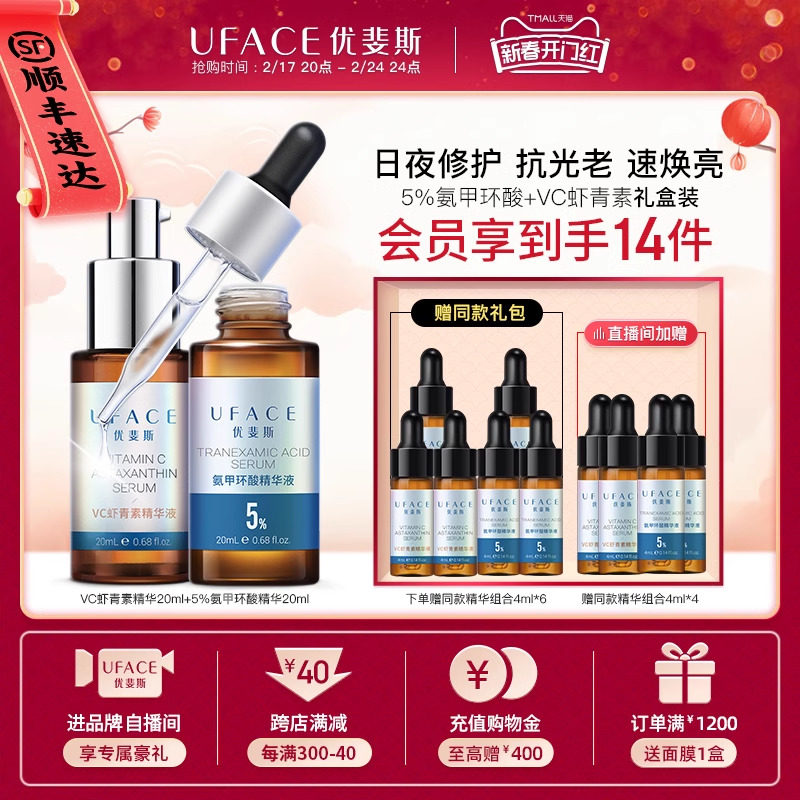 优斐斯氨甲环酸传明酸+VC虾青素精华液套装 抗氧化 淡色沉速焕亮