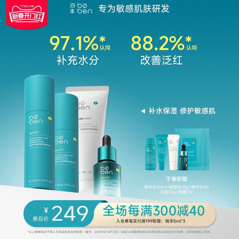 【二代升级】泊本6D玻尿酸水乳肌底液洁面套装敏感肌修护屏障保湿