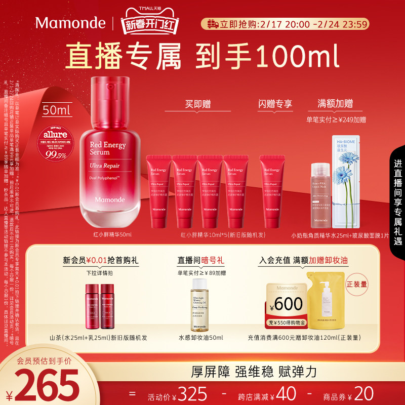 梦妆第2代红小胖精华修护保湿肌底液抗皱紧致舒缓祛痘精华液官方