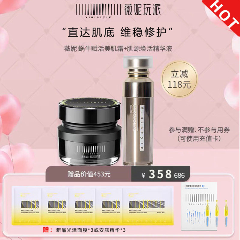 薇妮vinistyle化妆品旗舰店蜗牛赋活美肌霜面霜小黑瓶魔瓶肌底液