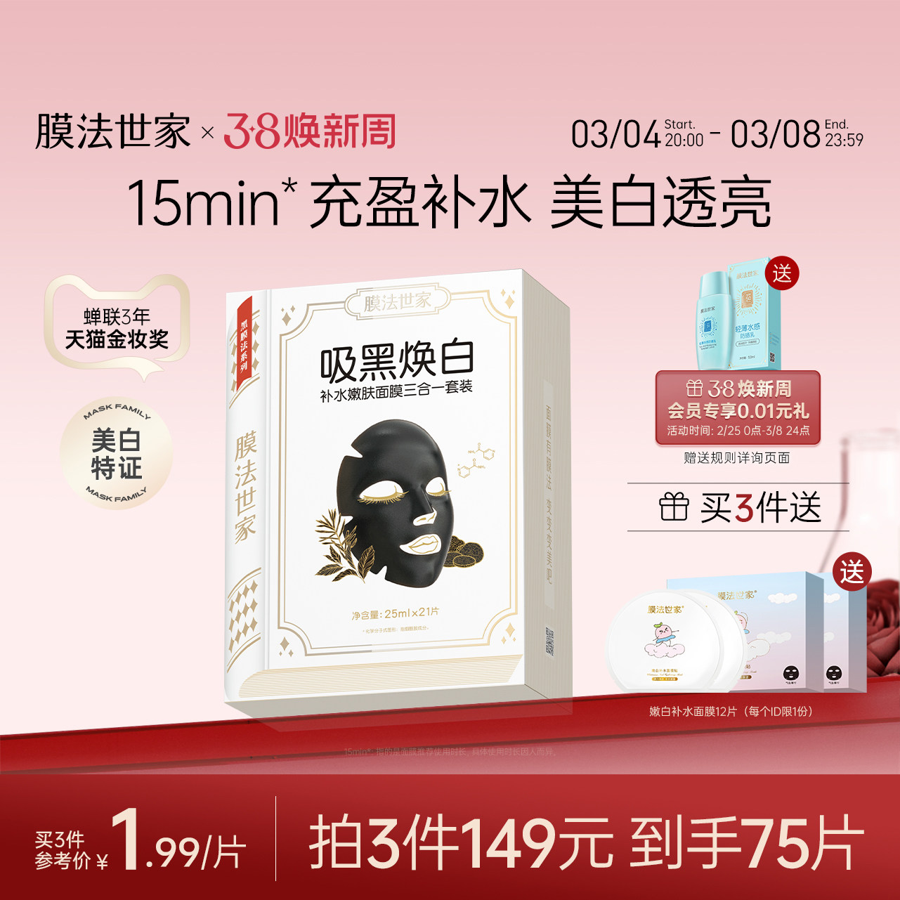 膜法世家吸黑美白面膜21片补水保湿清洁黑头收缩毛孔提亮肤色正品
