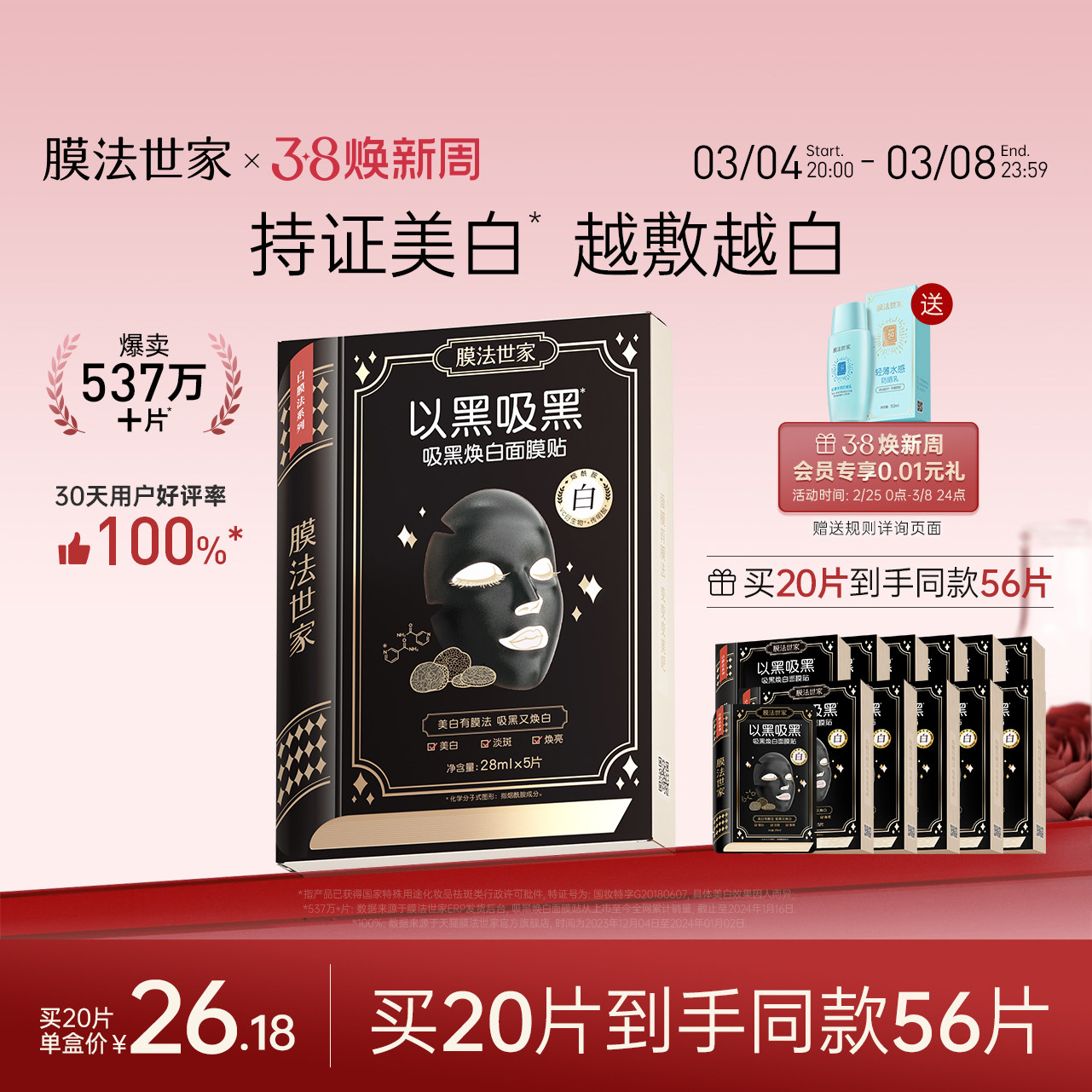 膜法世家吸黑焕白黑面膜美白补水保湿提亮肤色女男士改善黄气暗沉