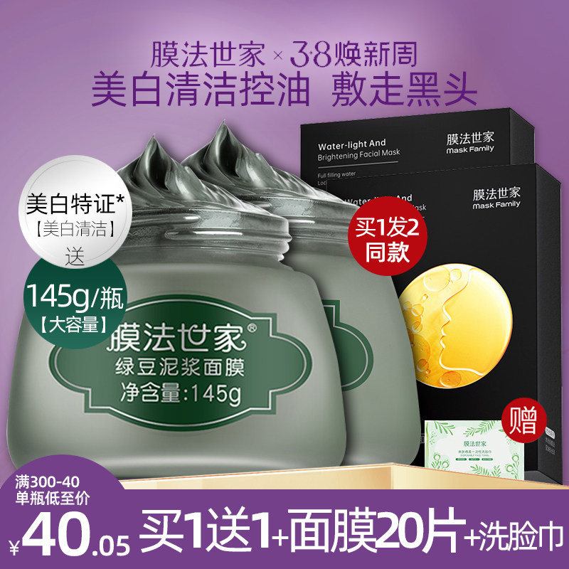 膜法世家绿豆泥浆面膜女正品祛痘美白补水清洁泥膜涂抹式魔法世家