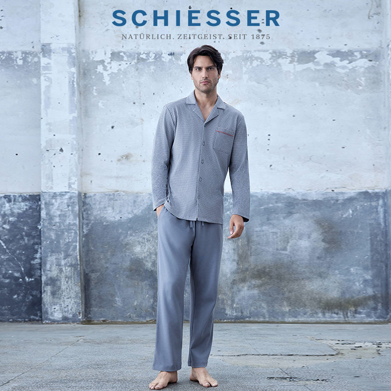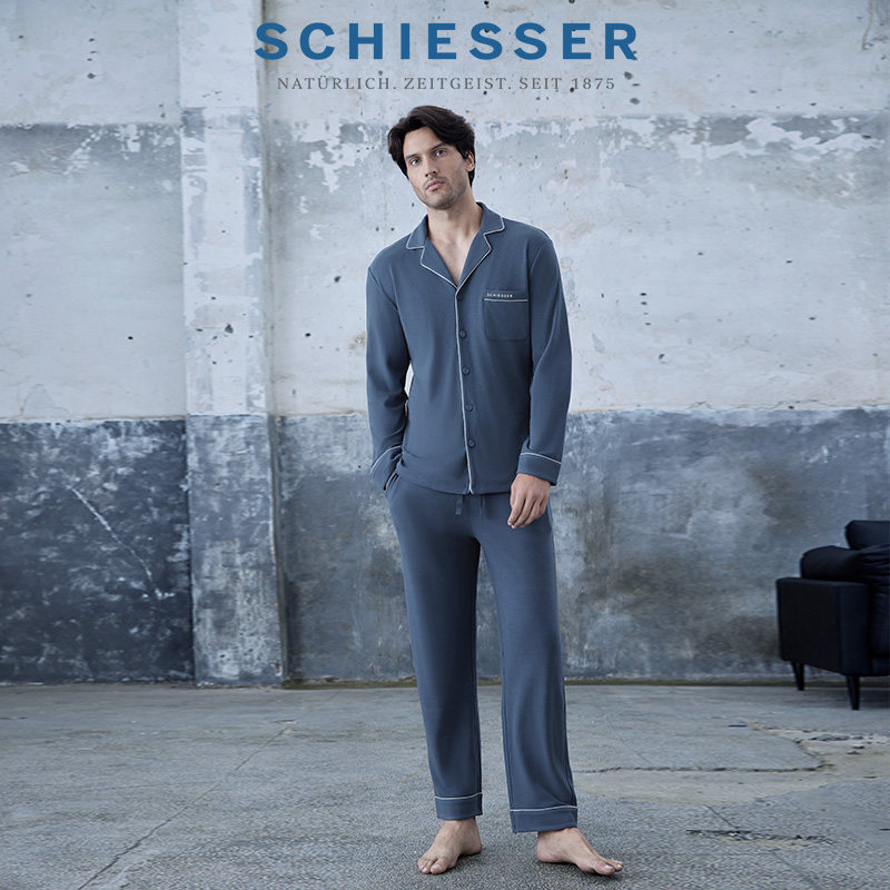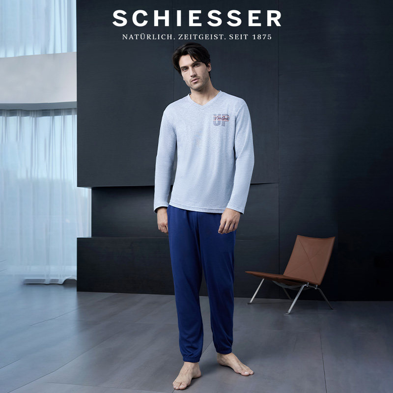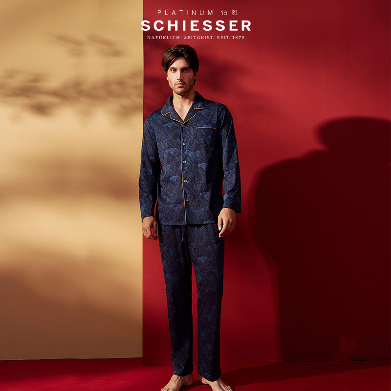 SCHIESSER舒雅铂雅男士御印系列80S丝光纯棉睡衣家居服套装21819H