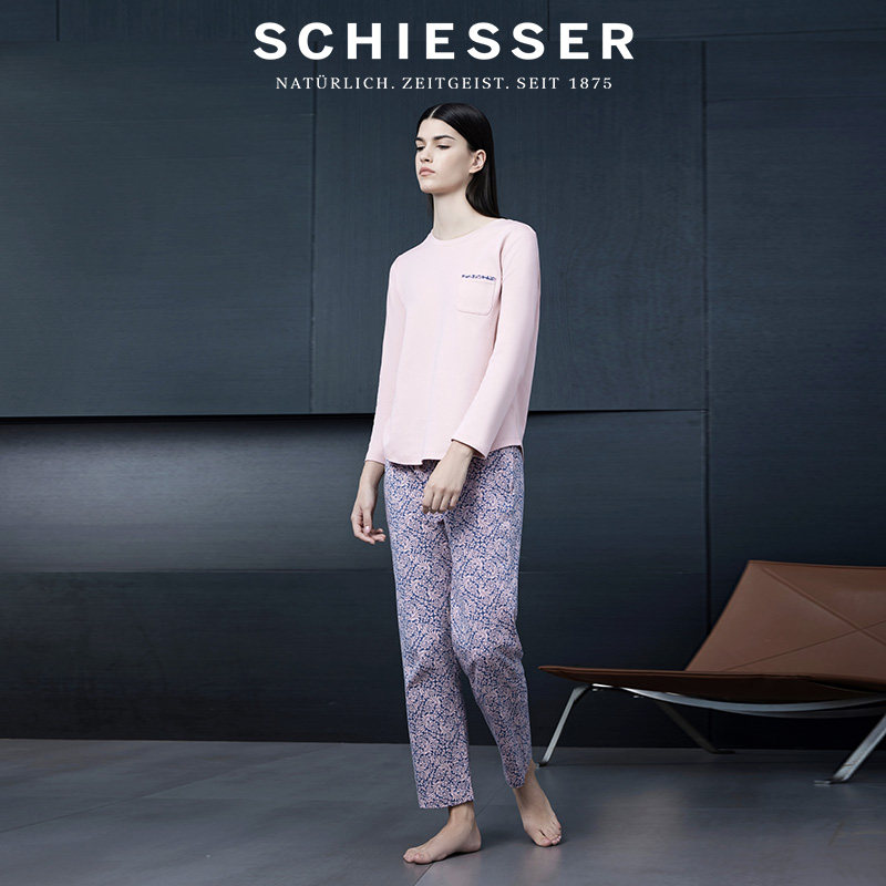 SCHIESSER舒雅女士40S纯棉双面布印花圆领睡衣家居服套装21512H