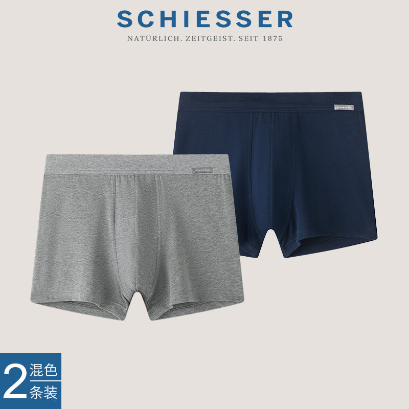 2条装SCHIESSER舒雅男士50S舒美棉棉质透气中腰平角内裤20028T
